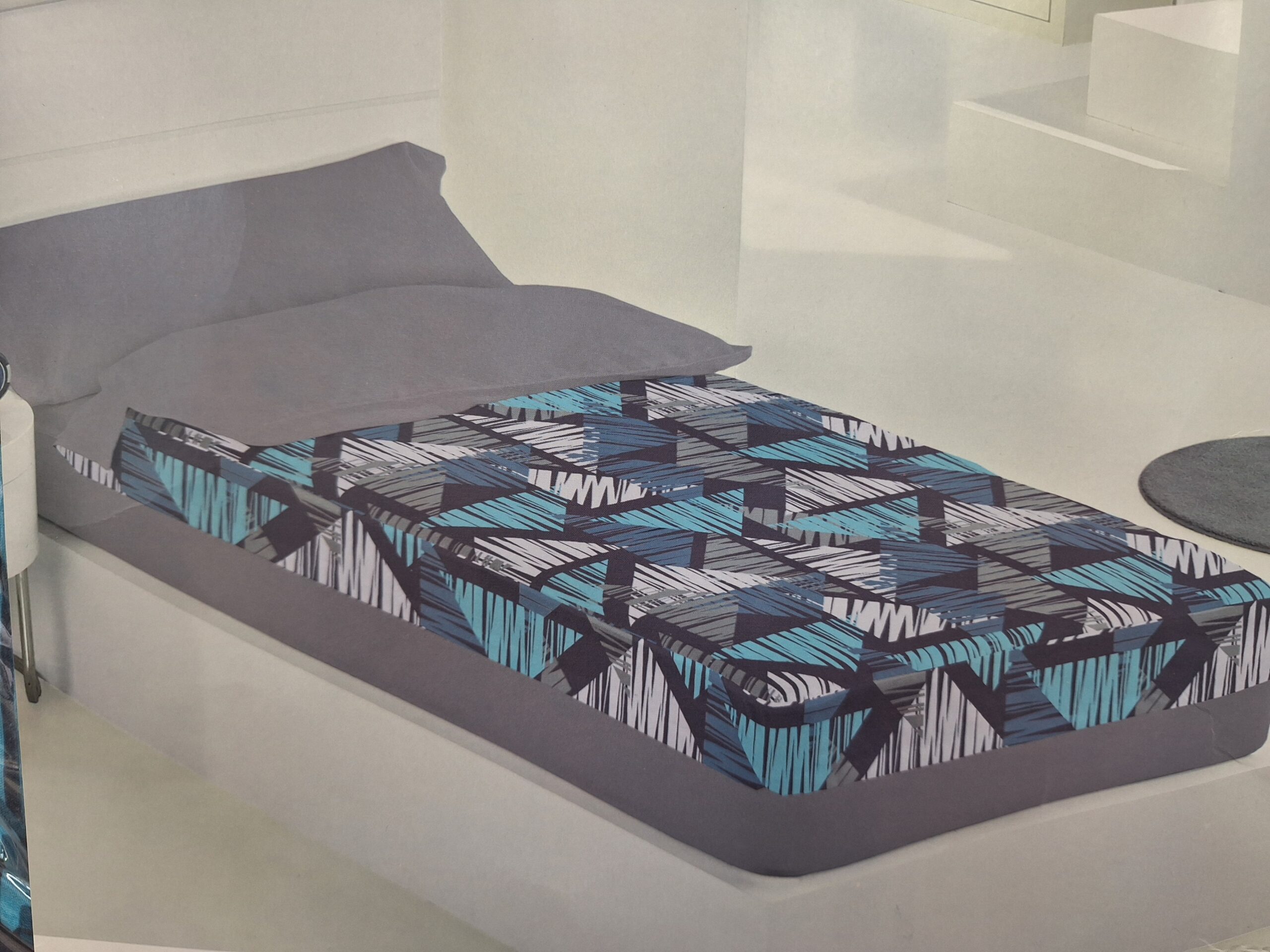 Saco nórdico infantil para cama de 90. Incluye funda de cojín, funda de saco, relleno y sábana bajera. Tejido: 50% algodón 50% poliéster. Relleno: 100% poliéster.